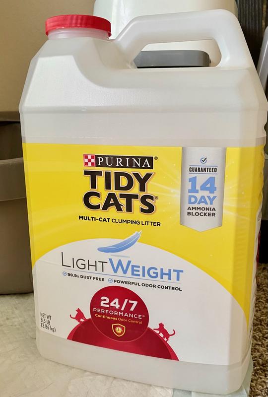 Tidys Instant Action LightWeight cat litter traps odor from the start prevents ammonia odor later AND its half the weight compared to leading clumping litter. Ammonia Blocker prevents ammonia odor from forming for. Jugs - Purina Tidy Cats Low Dust Clumping Cat Litter LightWeight Glade Clear Springs Multi Cat Litter.